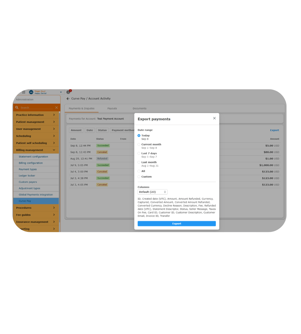 Combine our standard dental reports, custom report functionality, and Curve Insights dashboard to provide key analytics for driving finances and operations.